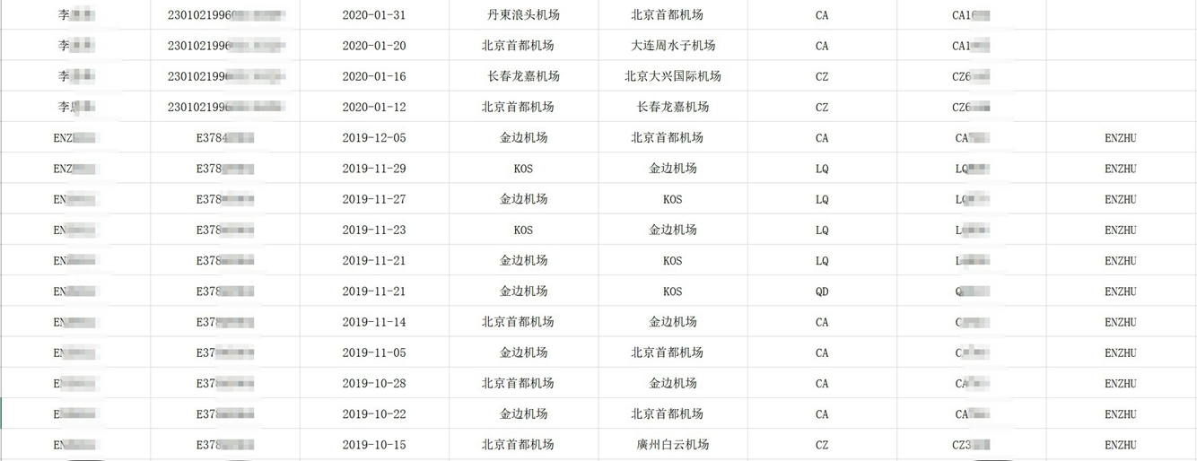 • 航空订票记录:有过订票记录,但是不一定实际出发。实际的航班以离岗记录里的为准。